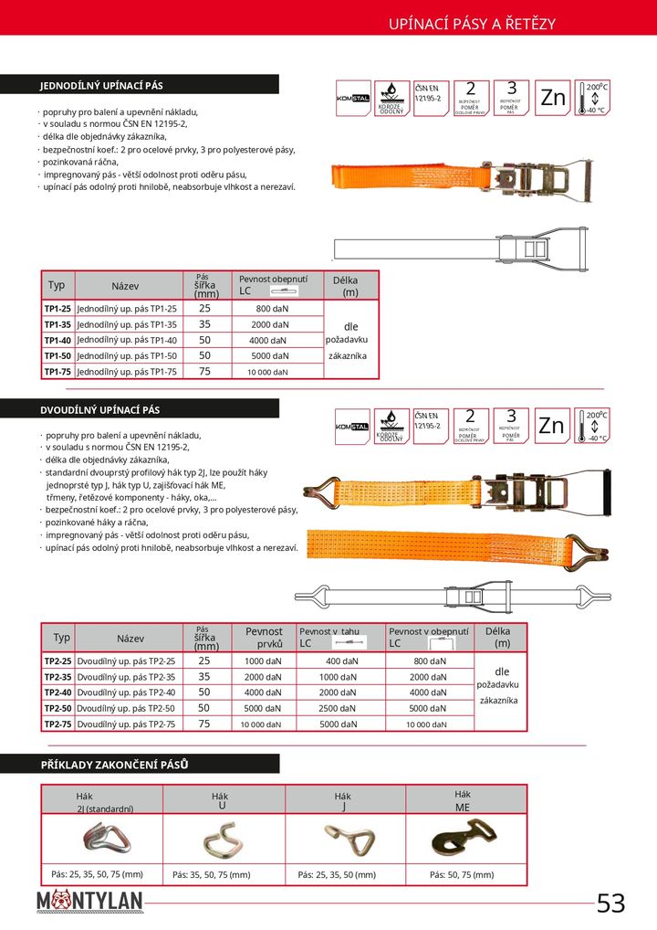 Upínací prostředky slouží k bezpečnému zajištění nákladu při přepravě a manipulaci. Nabízíme upínací pásy i řetězy v různých délkách, rozměrech a pevnostech – od standardního kotvení až po použití v nejnáročnějších podmínkách. V sortimentu najdete: Upínací pásy s ráčnou včetně koncovek; Jednodílné a dvoudílné upínací pásy; Upínací řetězy s napínáky – jednodílné, dvoudílné.