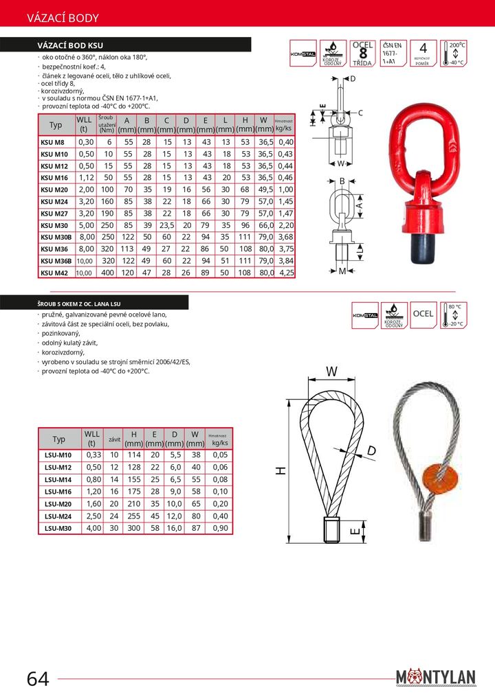 Vybrané modely umožňují plné natočení nebo otáčení o 360°, což zajišťuje maximální flexibilitu a bezpečnost při uchycení břemen z různých směrů. Vázací body dodáváme v různých provedeních podle potřeby – pro pevnou montáž i snadnou demontáž.